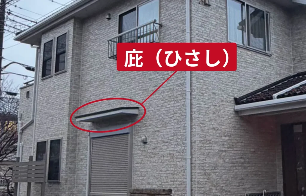 庇(ひさし)とは、玄関や窓などの開口部の上に設置される小さな屋根状の部材のことを指します。