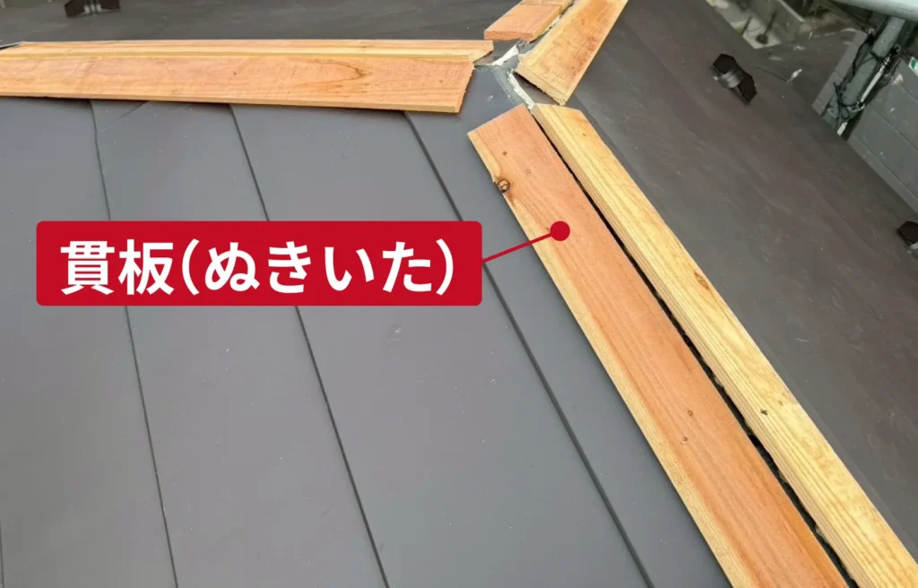 内部に「貫板(ぬきいた)」という下地材があり、この2つがセットで機能しています。