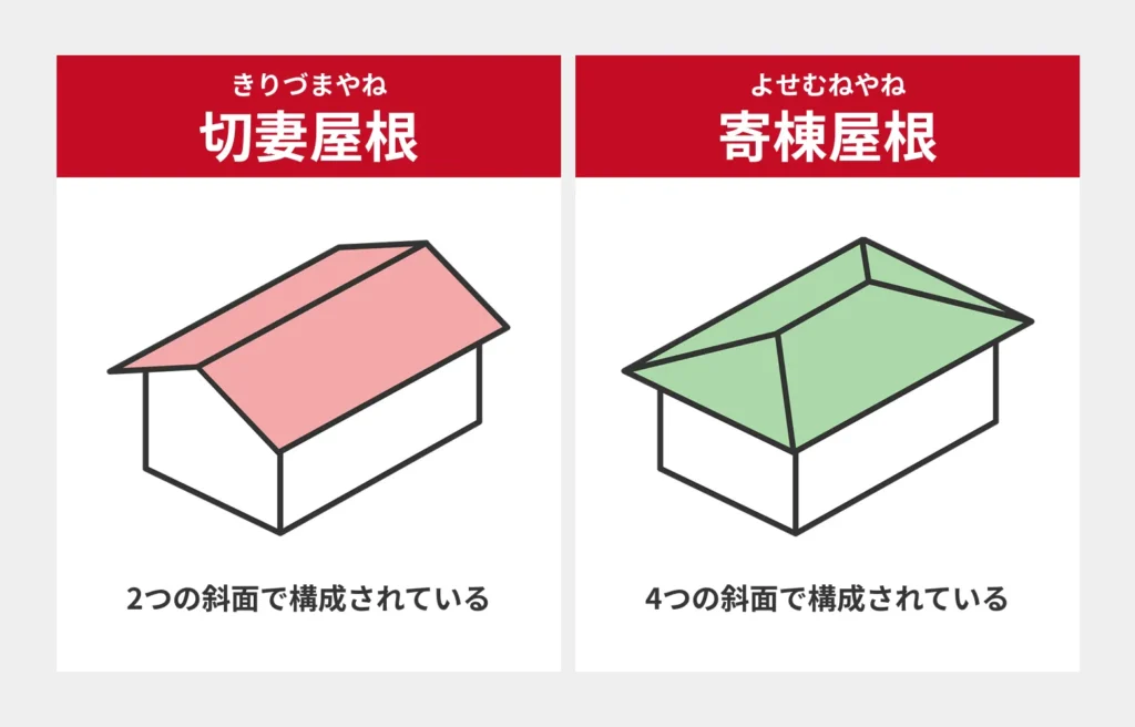 屋根の形状によって棟の本数・位置が異なるため、まず自分の家の屋根がどの形状かを確認してみましょう。