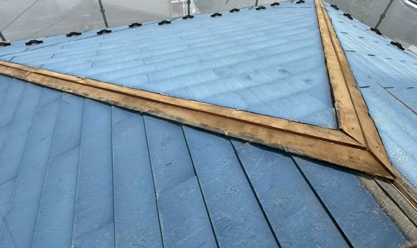 屋根のてっぺん部分(棟)に、新しい下地を組んで棟板金を取り付けます。